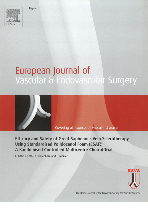 Rabe et al. Efficacy and Safety of Great Saphenous Vein Sclerotherapy Using Standardised Polidocanol Foam (ESAF): A Randomised Controlled Multicentre Clinical Trial.